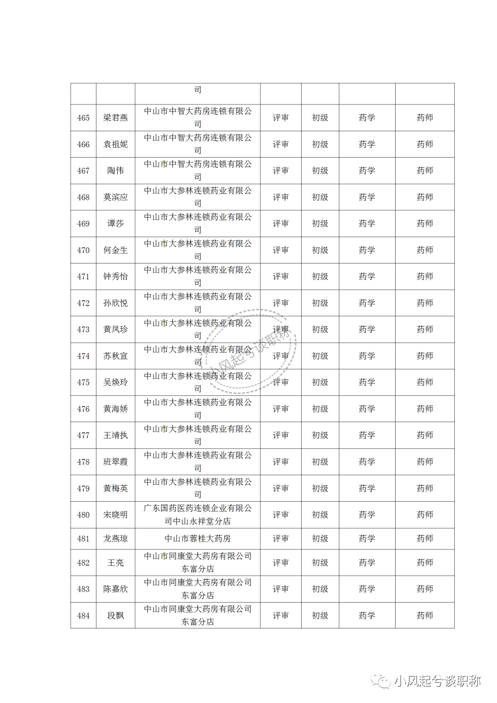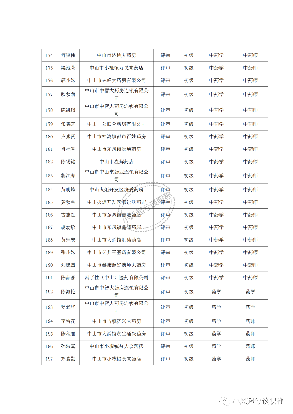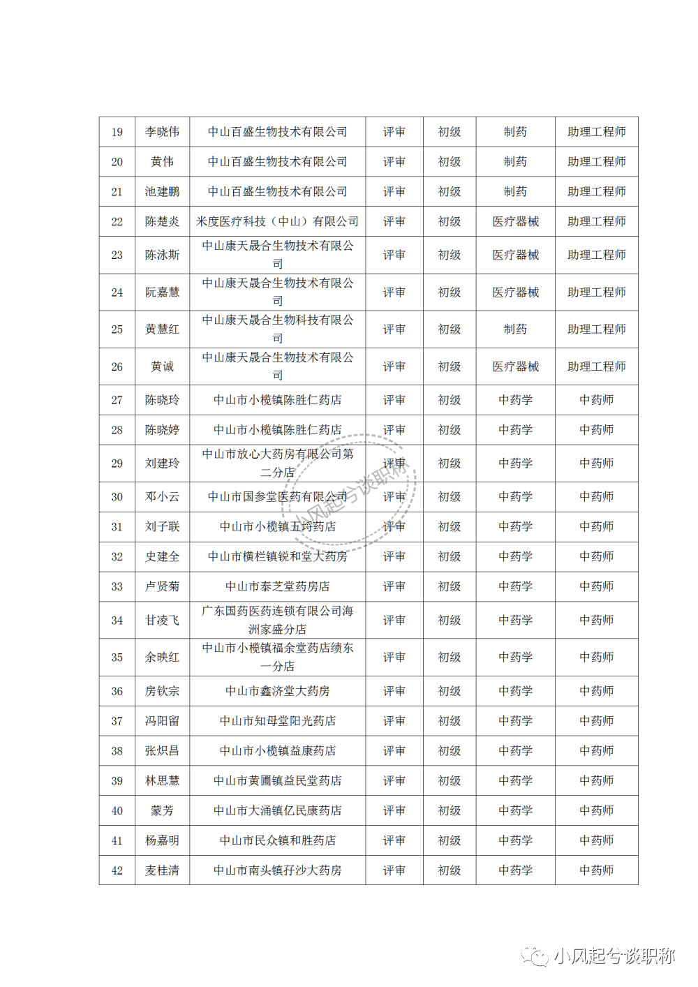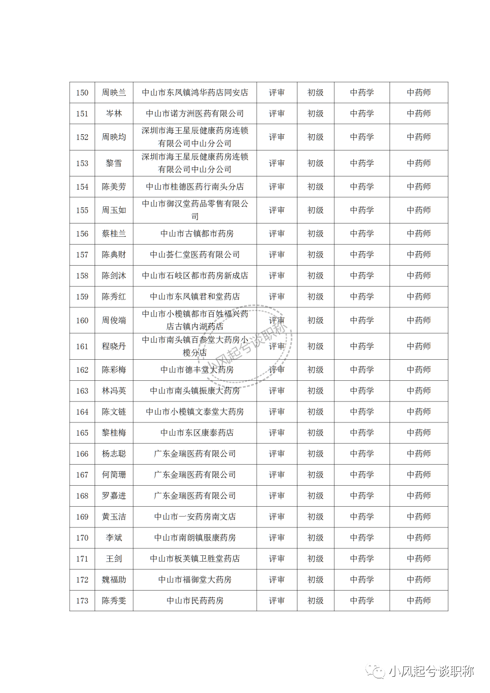 1、2022年度中山市医药行业中、初级职称评审(认定)通过人员名单