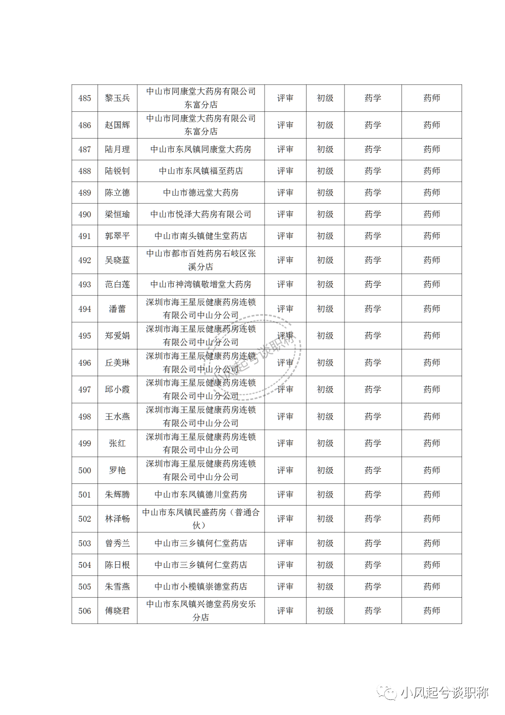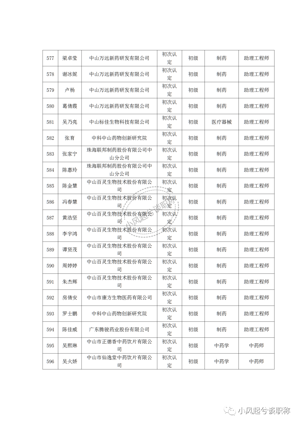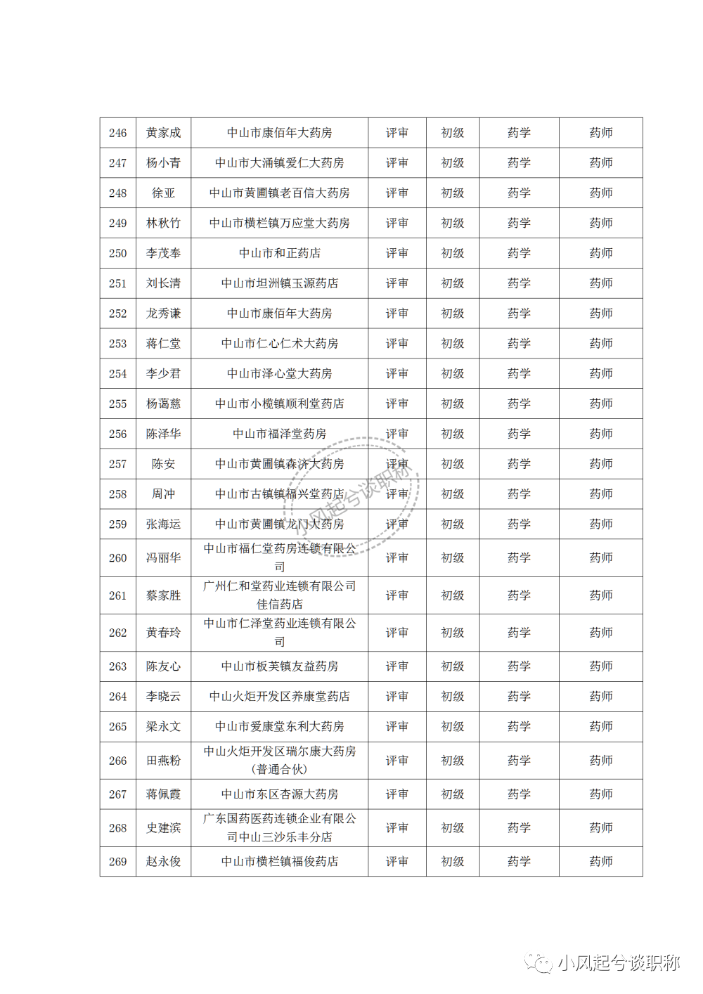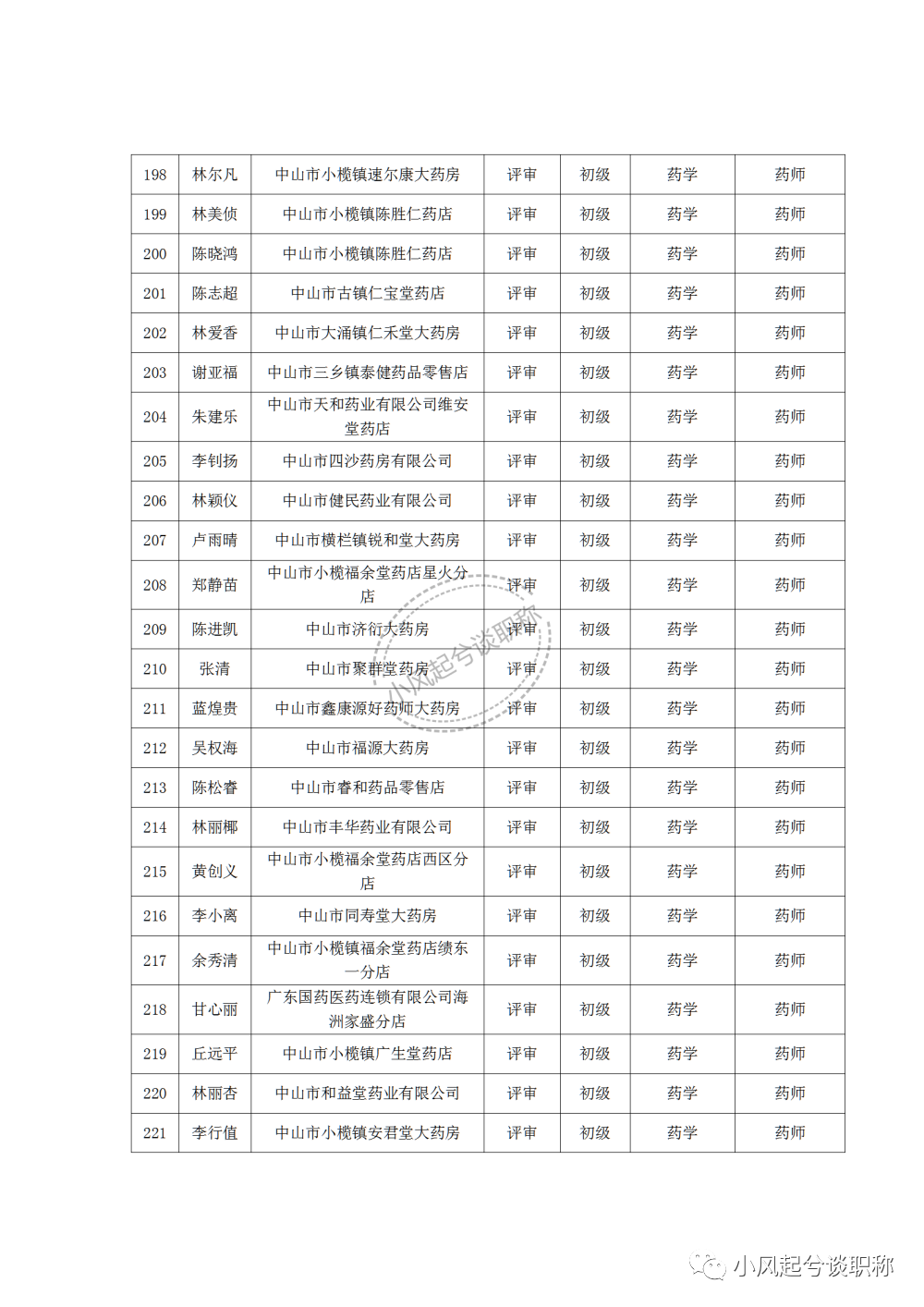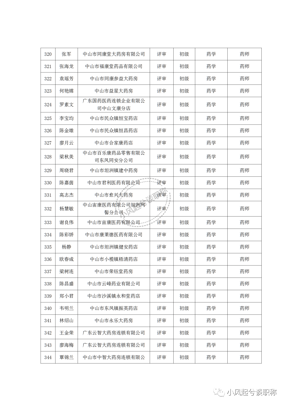 1、2022年度中山市医药行业中、初级职称评审(认定)通过人员名单