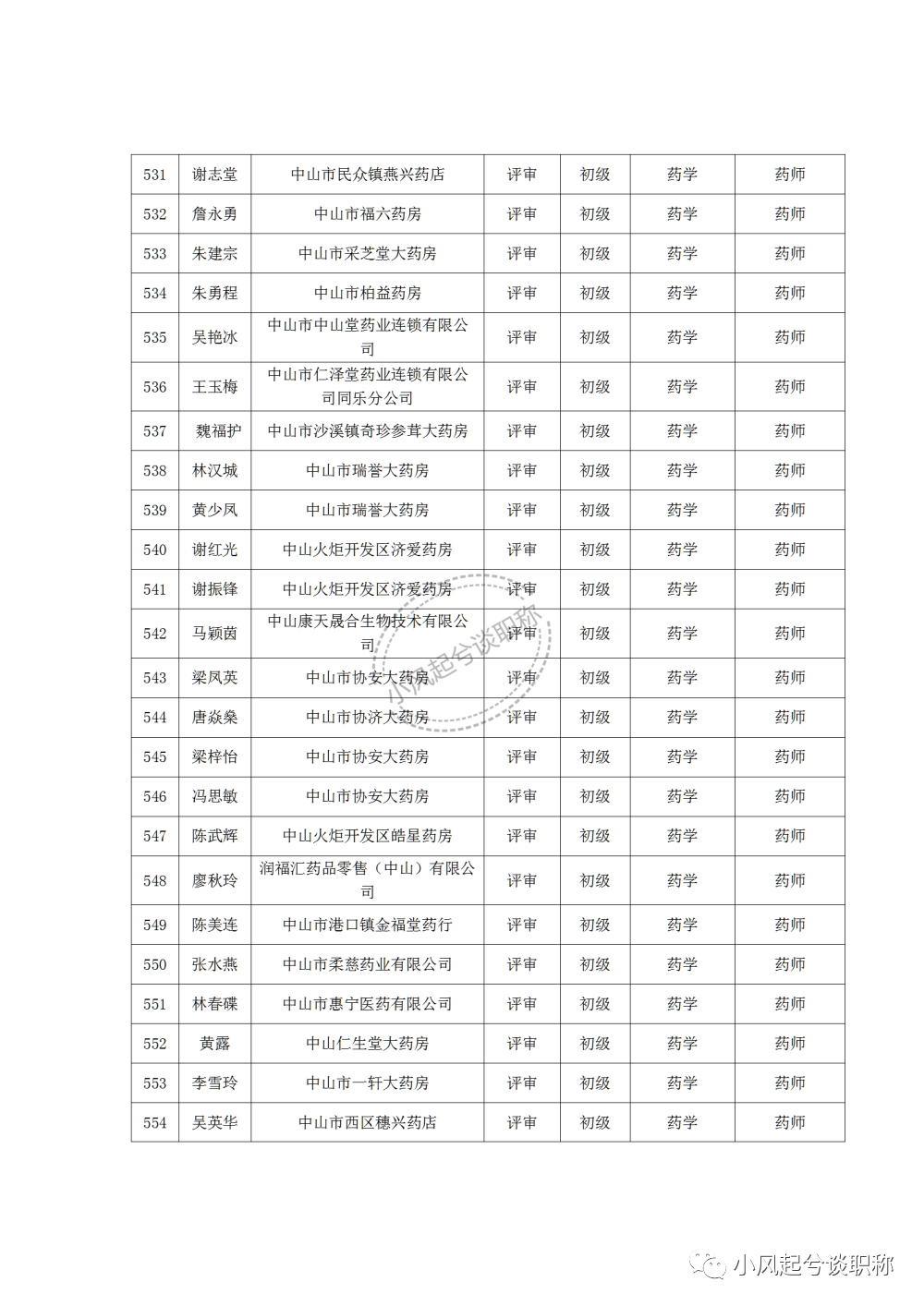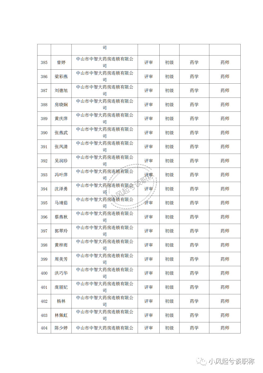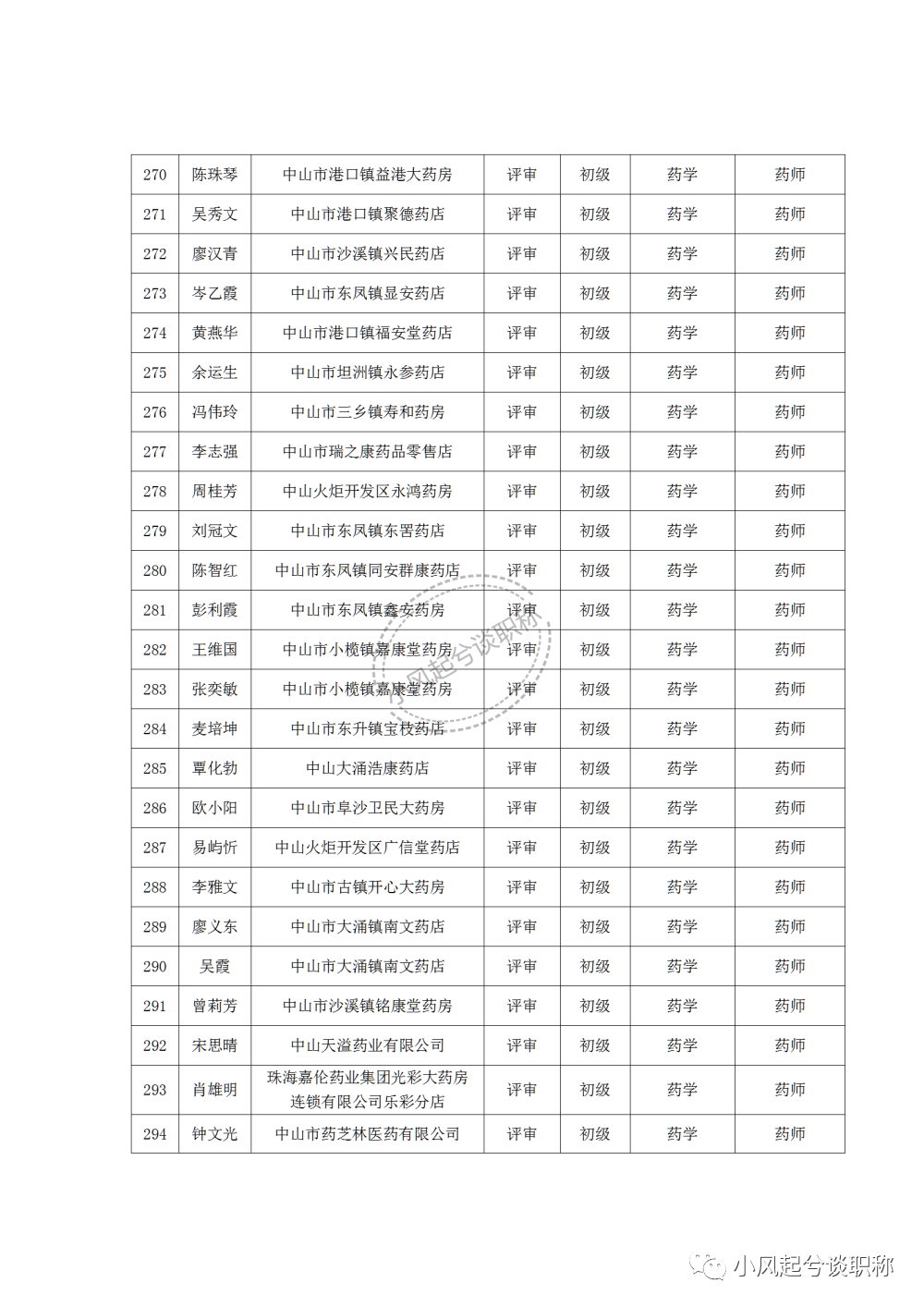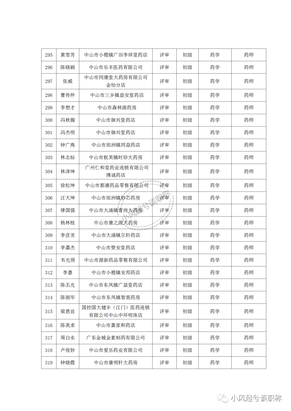 1、2022年度中山市医药行业中、初级职称评审(认定)通过人员名单