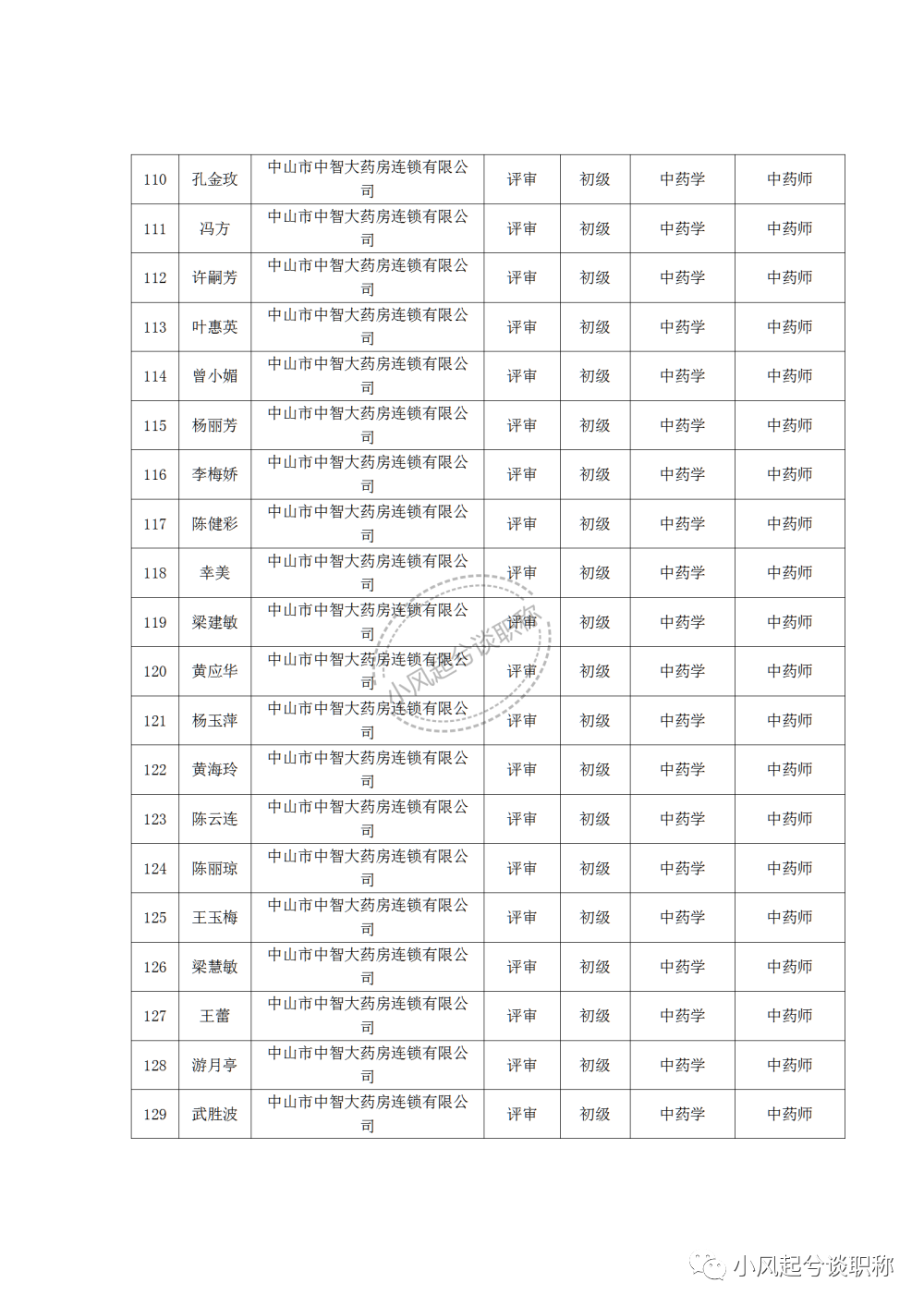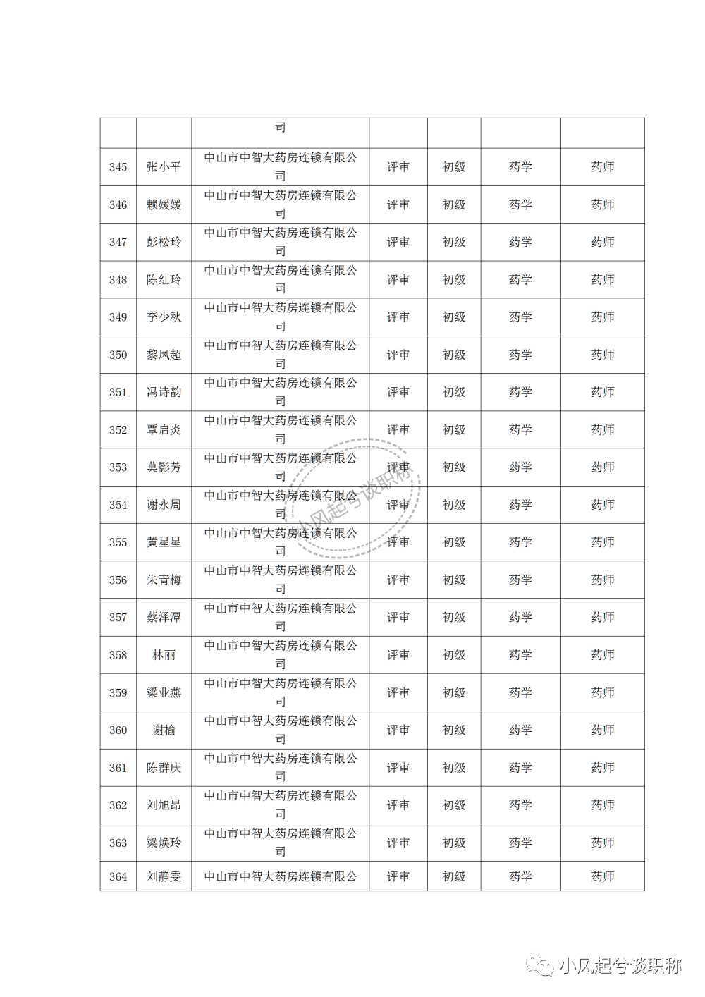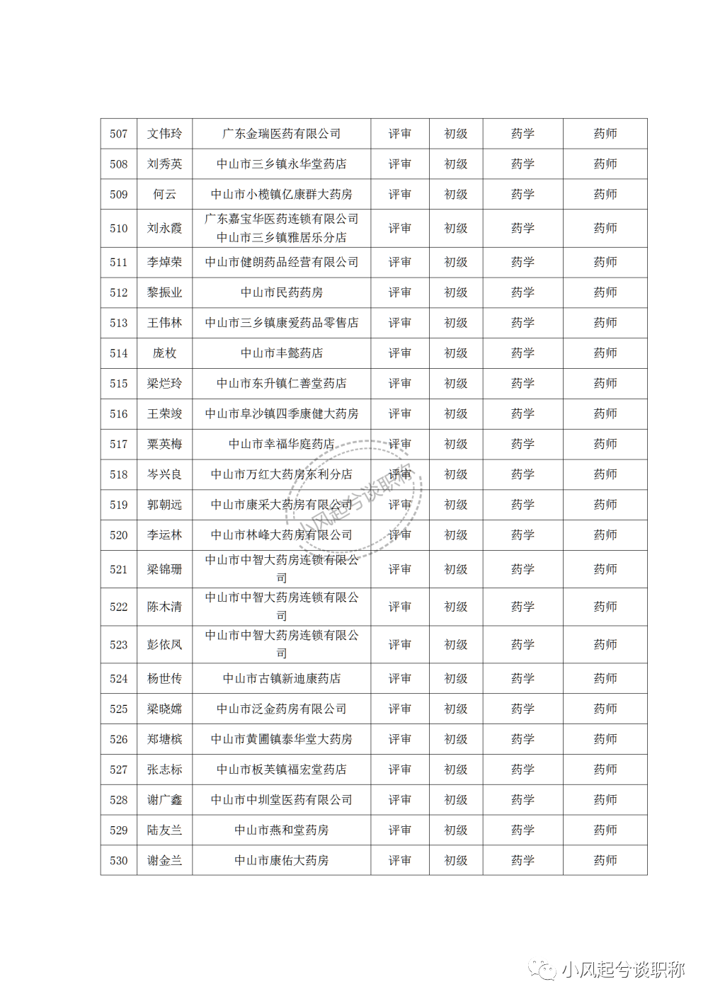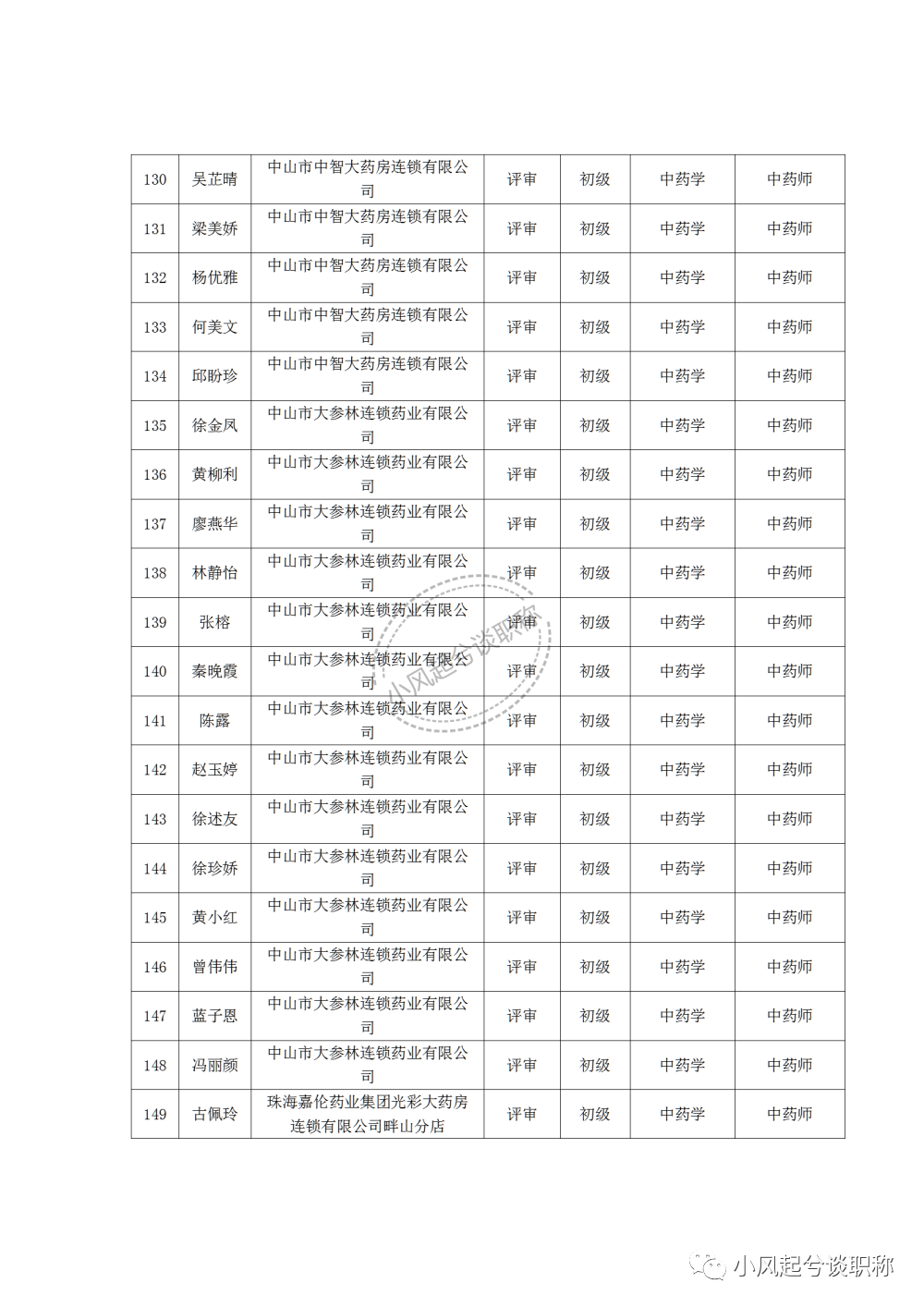 1、2022年度中山市医药行业中、初级职称评审(认定)通过人员名单