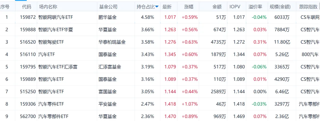 相关ETF:智能网联汽车ETF、汽车ETF等