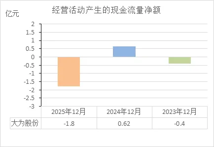但问题是钱去哪了? 既然回款这么快,按理说现金流应该很充裕,可2025年经营现金流却巨亏1.8亿。原因只有一个:钱都压在存货上了(存货从0.88亿暴涨到2.4亿)。相当于收回来的钱马上又拿去买货,货却卖不动。