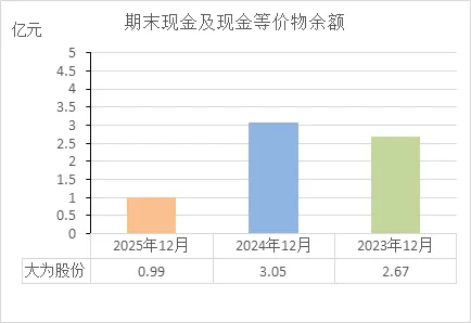 2025年:现金净减少 2.06亿(期末只剩 9857万,创三年新低)