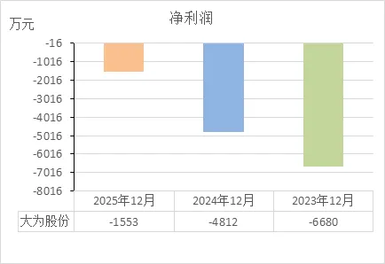 真相很扎心:连续三年亏钱。2023年亏6680万,2024年亏4812万,2025年亏1553万。虽然亏得越来越少,但始终没能扭亏为盈。