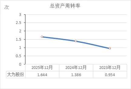 2025年(1.644次):效率达到三年最高,一年转1.6圈。营收12.22亿,资产却缩水到7.07亿,说明用更少的资产做出了更大的生意,效率确实在进步。