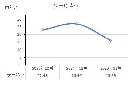 2025年(22.98%):又降回去了。借钱比例比2024年低了4个百分点。但这不是因为还了钱(负债只从2.1亿降到1.62亿),而是因为总资产缩水了(从7.8亿降到7.07亿)。分母变小,比率自然下降。
