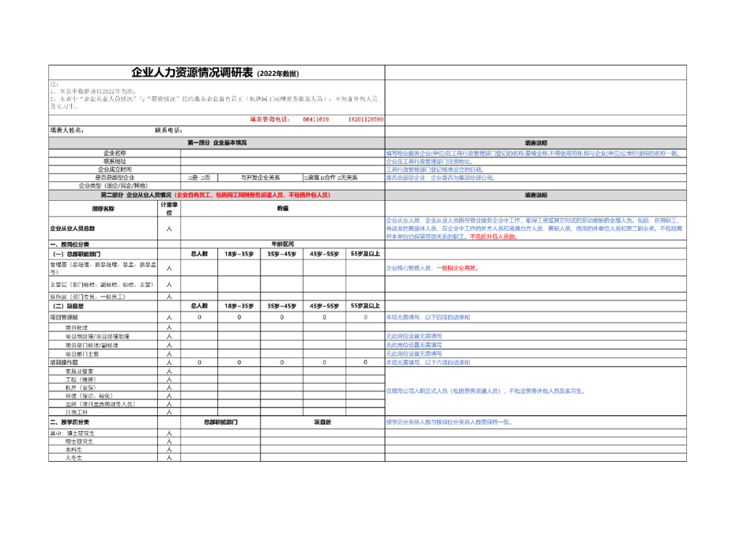 附件1:企业人力资源情况调研表(2022年度)