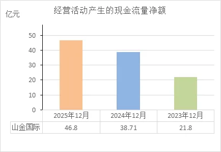 赚钱能力越来越强:从21.8亿到38.7亿,再到46.8亿,三年翻了一倍多。这说明公司的主业(挖矿卖金)不仅稳定,而且在持续增长,业务扩张实实在在地转化成了现金。