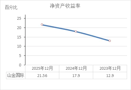 连年跳涨:12.9% → 17.9% → 21.56%。三年涨了近一倍。这意味着,如果2023年股东投100块钱能赚12.9块,到2025年同样投100块钱就能赚21.56块。赚钱效率明显提高了。