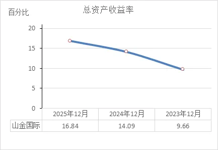 持续攀升:9.66% → 14.09% → 16.84%。三年涨了7个多点。这意味着,2023年用100块钱资产能赚9.66块,到2025年同样用100块钱资产就能赚16.84块。资产的使用效率明显提高了。