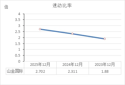 2025年(2.702倍):意味着每1块钱的短期负债,背后就有2.7块钱的现金、应收款等"硬资产"做保障。就算把存货(矿石、半成品)全部剔除(因为变现慢),它依然能轻松覆盖所有短期债务。