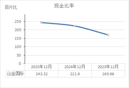 2025年(243.32%):意味着每1块钱的短期负债,账上就有2.43块钱的现金直接等着还。注意,这是现金,不是存货也不是应收款,是随时能取出来用的真钱。