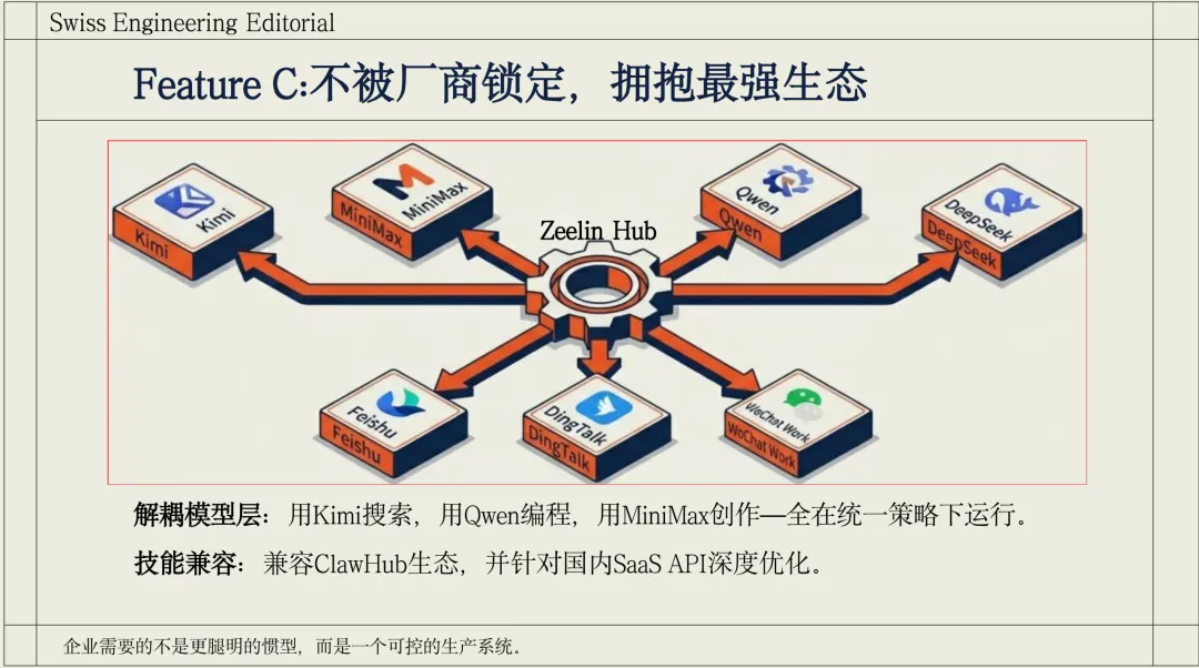 Zeelin-Claw:企业级发行版,如同 RedHat 之于 Linux,通过最小权限 + 审批流、SOP 标准化、多生态解耦适配,解决 OpenClaw 企业部署的合规与可控问题。