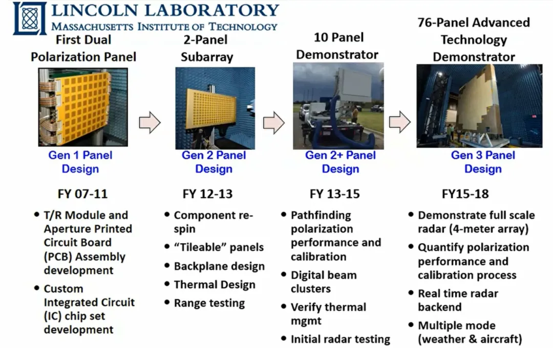 整合MIT/LL双极化面板技术、美国国防部研发的接收器/激励器/波束形成器、NSSL与国防部联合开发的软件。