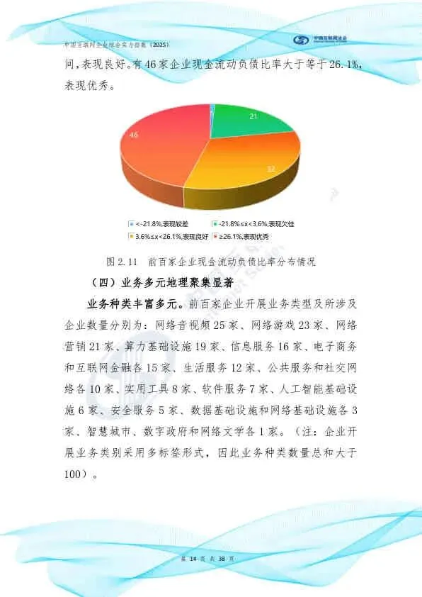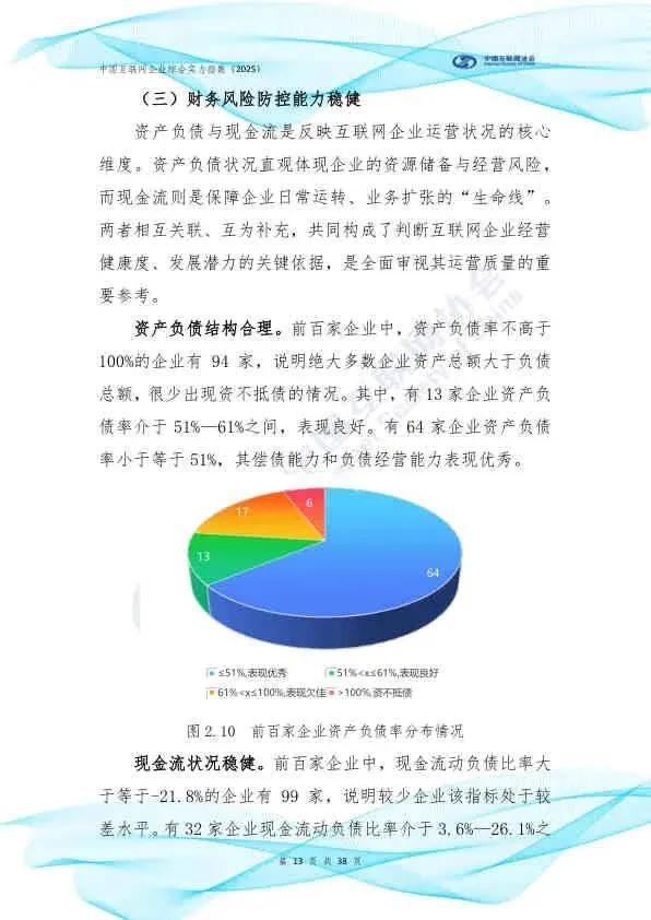 - 财务健康: 94%的企业资产负债率不高于100%,79%的企业现金流动负债比率表现良好或优秀。