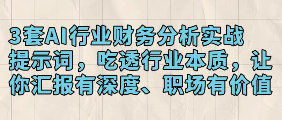 今天我把3套AI行业财务分析提示词法全部分享给你,不用死记硬背、不用熬夜啃资料,帮你快速吃透行业财务本质,老板提问对答如流,职场价值直接翻倍。