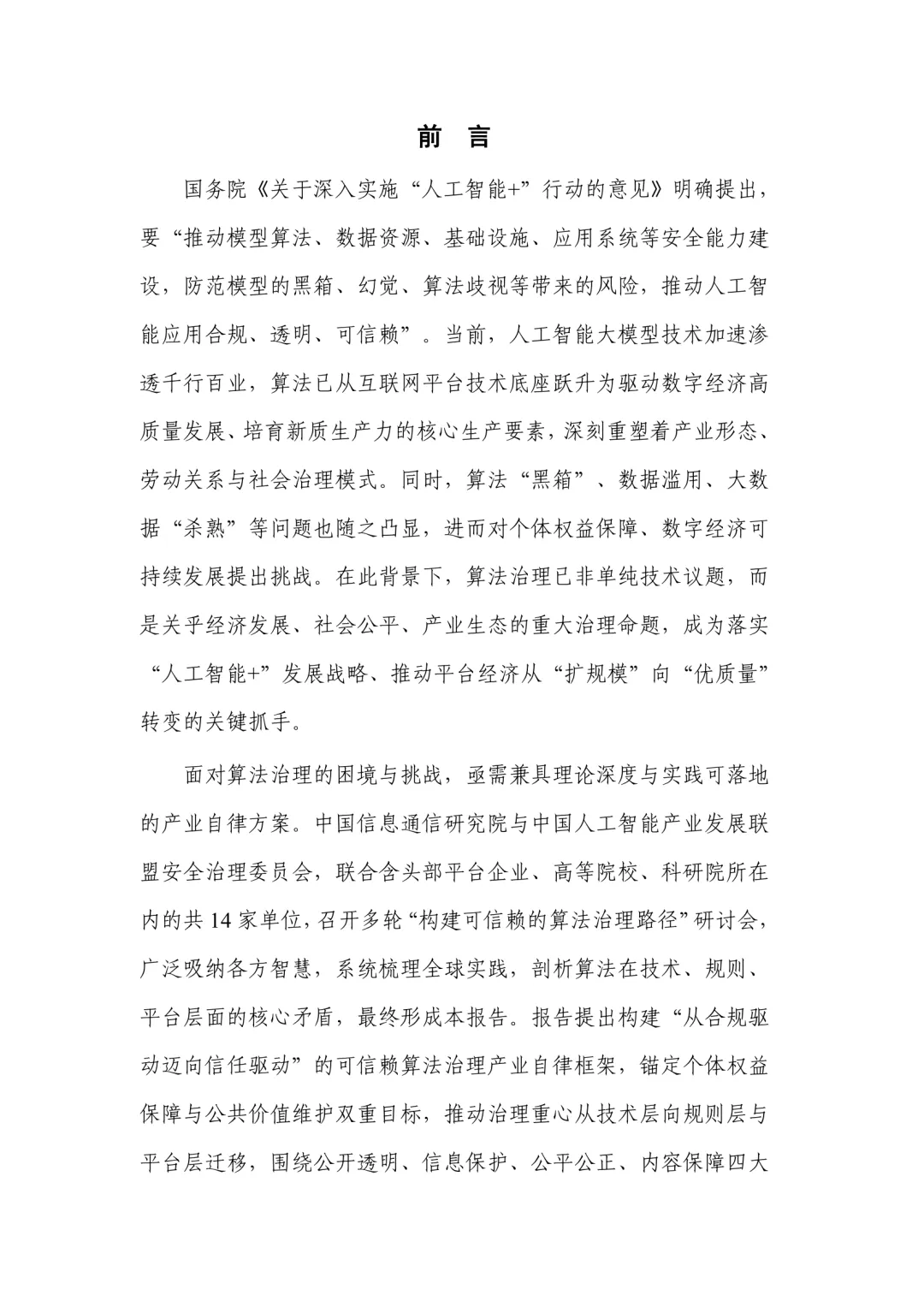 算法治理已成为推动数字经济高质量发展的重要议题。随着人工智能大模型技术的广泛应用,算法已从互联网平台的技术基础转变为驱动产业变革的核心要素,深刻影响着经济结构、社会关系与治理模式。然而,算法“黑箱”、数据滥用、大数据“杀熟”等问题频发,对个体权益和社会公平构成挑战。面对这些复杂问题,算法治理不再局限于技术层面,而是涉及经济发展、社会公平和产业生态等多维度的治理命题。为此,需构建兼具理论深度与实践可行性的产业自律机制。中国信息通信研究院与中国人工智能产业发展联盟安全治理委员会联合多家机构,通过多轮研讨,系统梳理全球经验,分析算法在技术、规则与平台层面的核心矛盾,提出“从合规驱动迈向信任驱动”的治理框架。该框架以保障个体权益和维护公共价值为目标,推动治理重心从技术层向规则层与平台层转移。围绕公开透明、信息保护、公平公正、内容保障四大支柱,构建技术、规则、平台三位一体的治理体系。强调治理应贯穿算法全生命周期,强化事前识别、事中防控与事后处置,建立政府、企业、公众多方参与的共治机制,推动算法从“工具理性”向“价值理性”转变。算法治理是一项长期任务,需要持续倡导“算法向善”的理念,通过标准化路径夯实治理基础,完善技术规范、管理标准与评测体系,确保算法应用的安全、透明与可控。