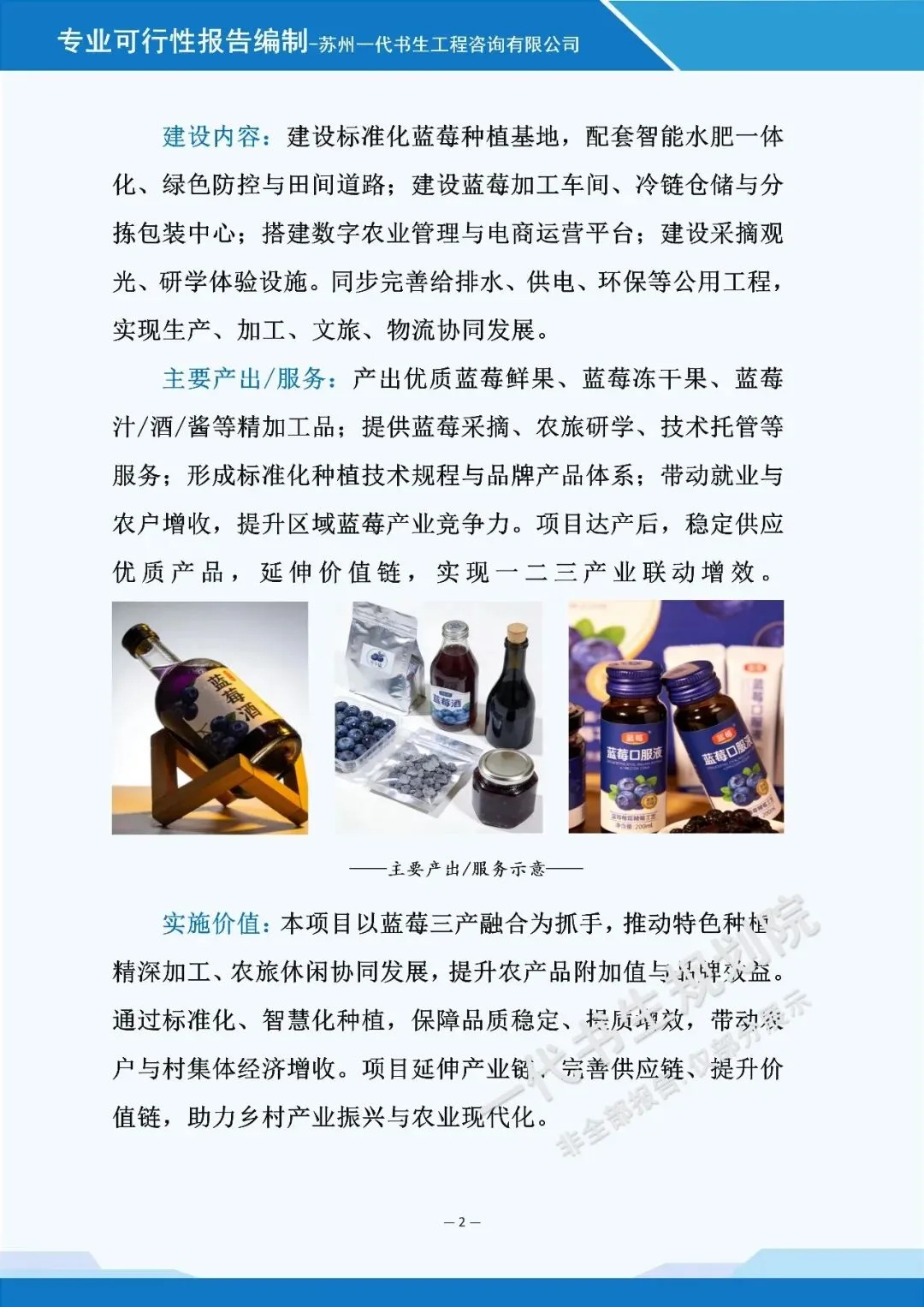 可研报告 | 蓝莓生态种植基地项目可行性研究报告-蓝莓加工产业园项目可行性-蓝莓一二三产业融合项目可行性报告