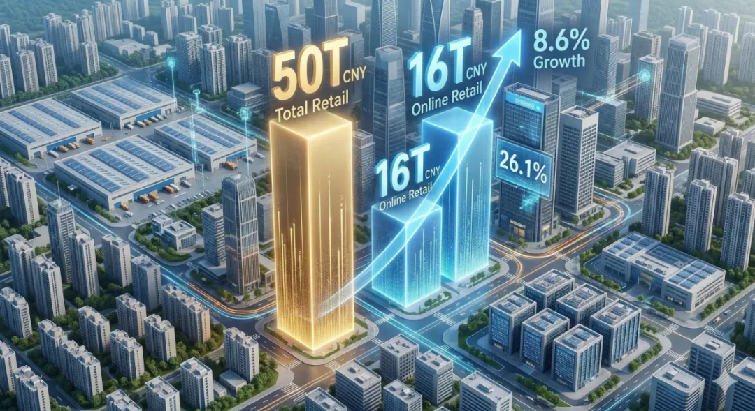 线上增速领跑:2025年全国网上零售额达到15.97万亿元,同比增长8.6%,增速显著高于大盘。