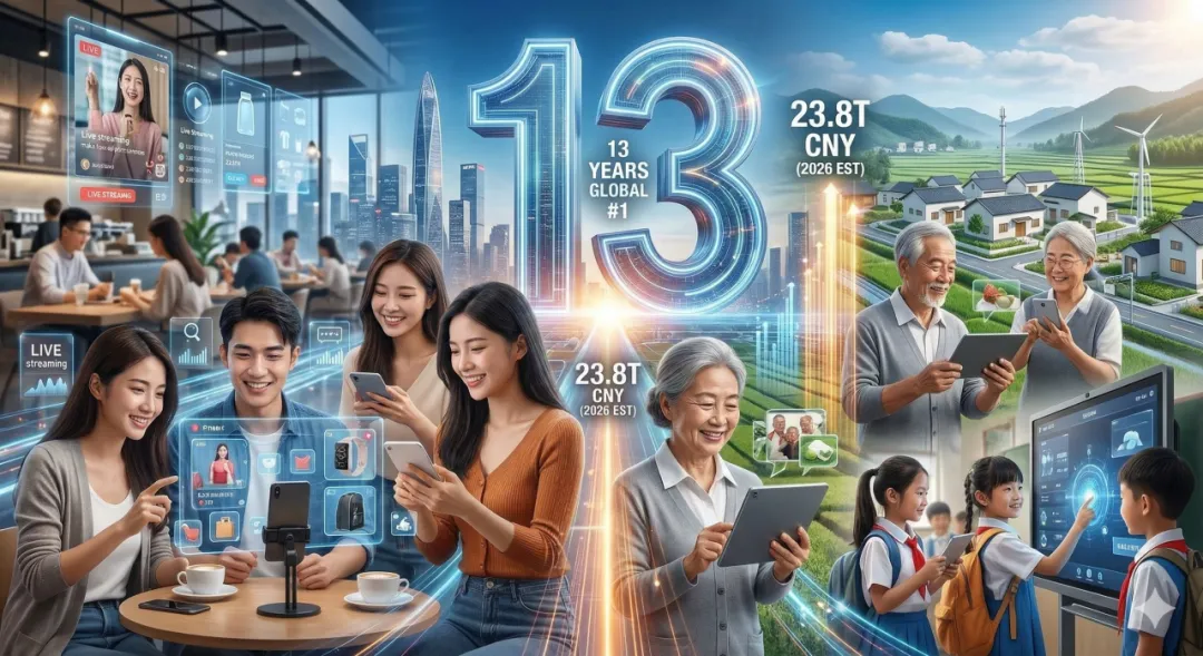稳居全球第一大市场:根据商务部2026年3月初发布的最新数据,“十四五”以来,我国数字消费整体规模已超23.8万亿元,连续13年位居全球最大网络零售市场。