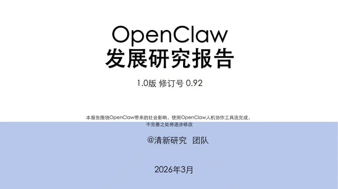 《2026年OpenClaw发展研究报告》由清华沈阳教授带领的清新研究团队打造,聚焦开源AI代理生态OpenClaw的发展、特性、生态布局与未来趋势,展现了其从工具向自治实体进化的核心逻辑与行业价值。