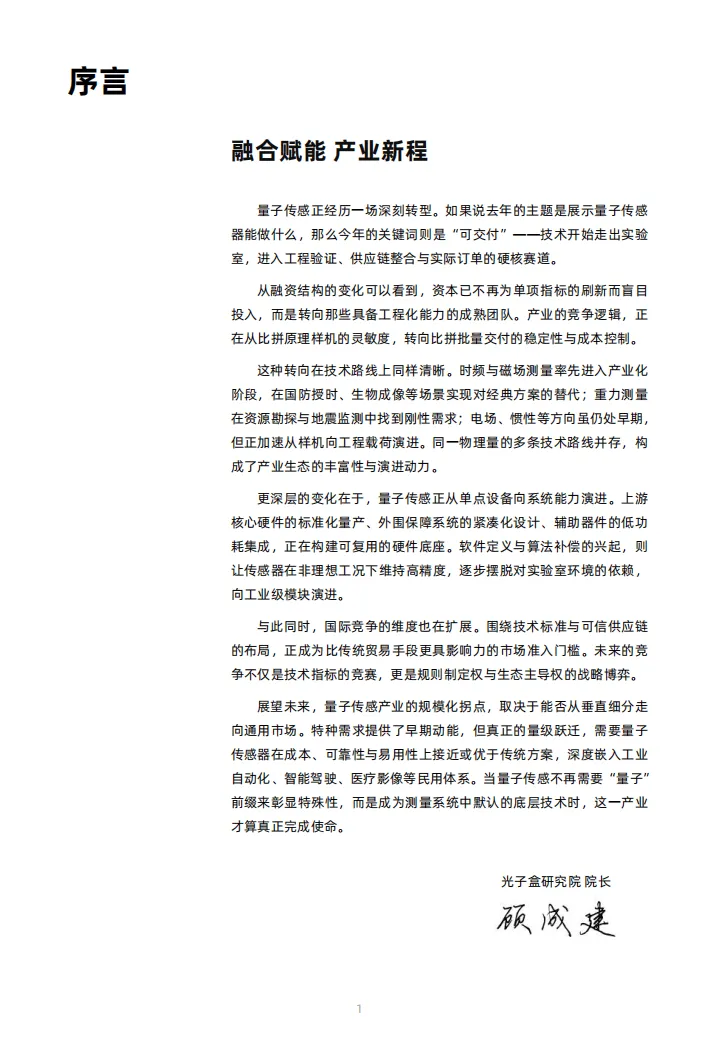 《2026年全球量子传感产业发展展望报告》指出,全球量子传感产业正从实验室技术验证迈入工程化、产业化落地的关键阶段,2025年行业核心关键词为“可交付”,竞争逻辑从比拼原理样机灵敏度转向批量交付的稳定性与成本控制,技术、资本、产业生态均呈现出深度转型特征。