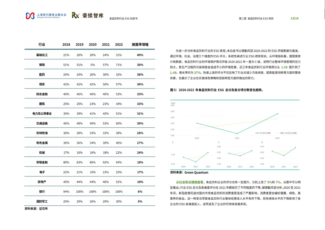 这份《2026食品饮料行业ESG白皮书》由荣续ESG智库研究中心联合上海现代服务业联合会发布,以ESG视角剖析食品饮料行业发展现状、转型痛点与实施路径,为行业企业可持续发展提供参考。白皮书指出,ESG是CSR理念的延伸,核心是摒弃利润私有化、成本外部化,与绿色发展理念相契合,而国内ESG发展仍面临起步晚、评价体系不完善等问题,食品饮料行业作为国民经济支柱,其ESG转型尤为关键。