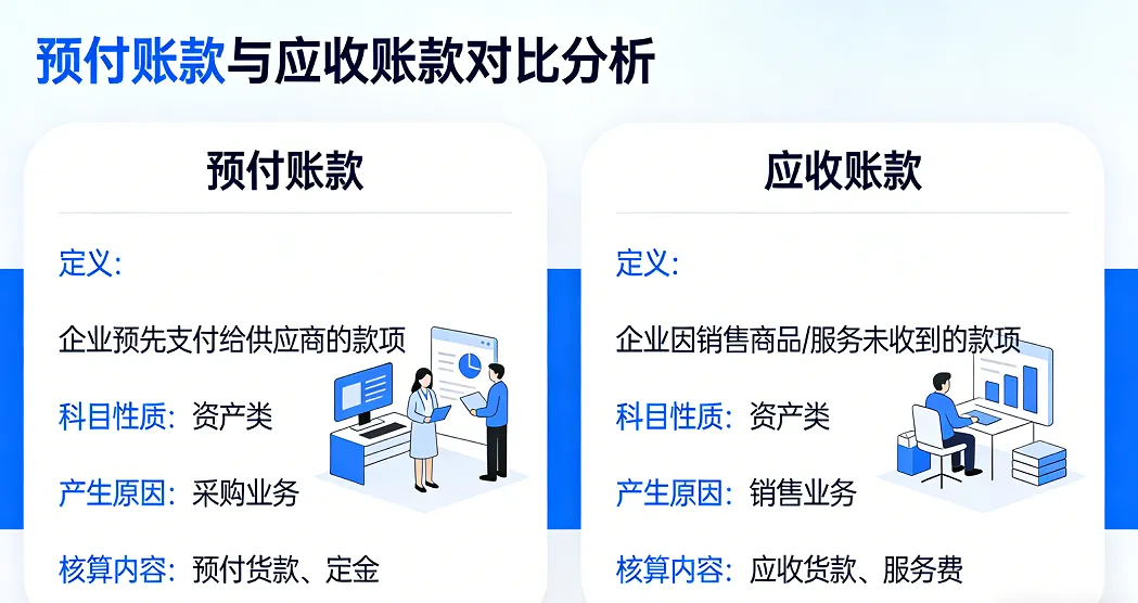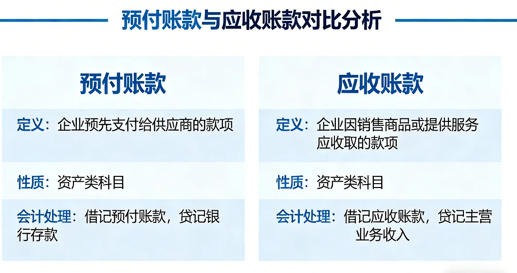 对于财务小白来说,预付账款很容易和应收账款搞混——其实两者刚好相反。