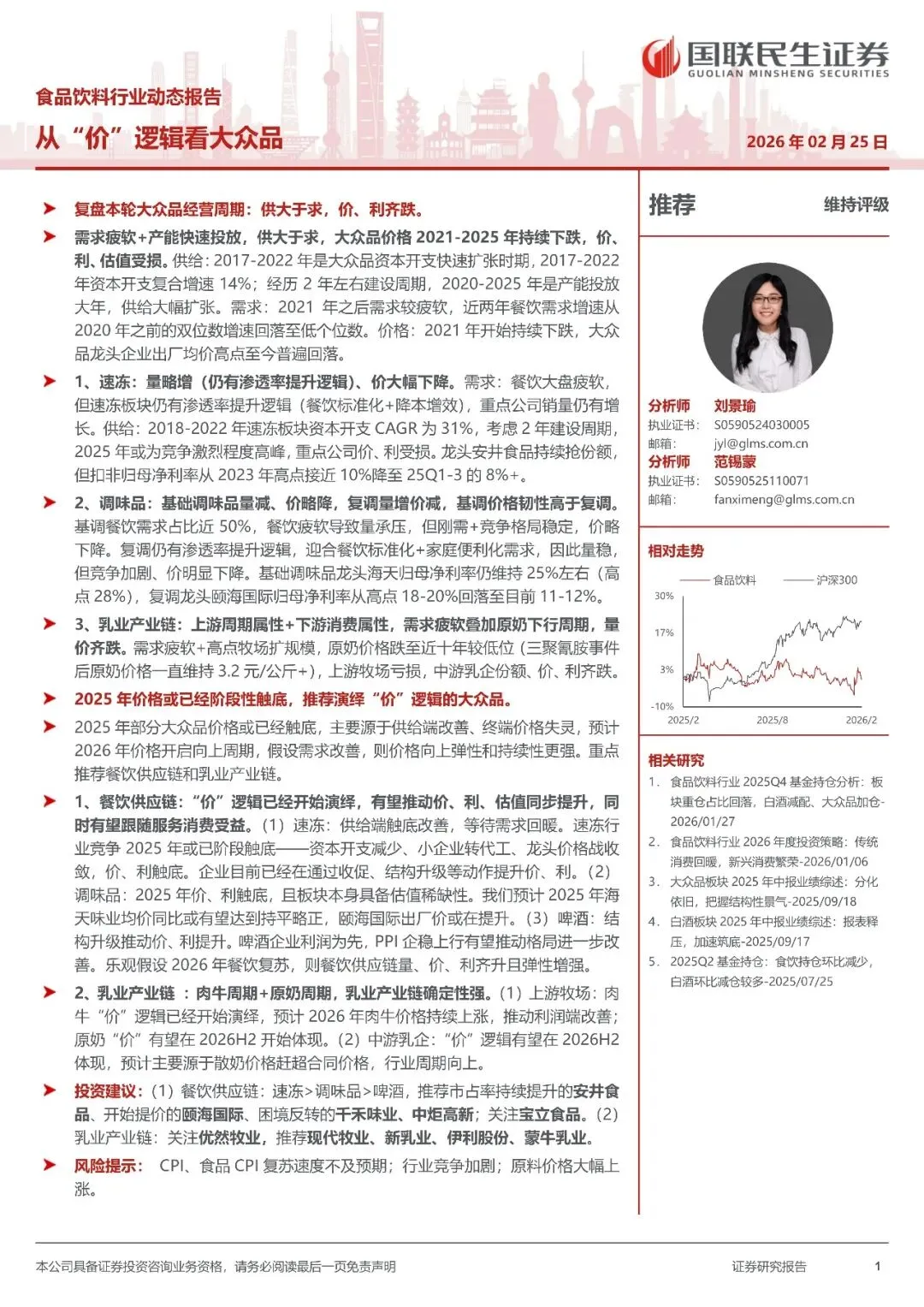 回复暗号:食品饮料行业动态报告:从“价”逻辑看大众品-260225-国联民生证券-15页