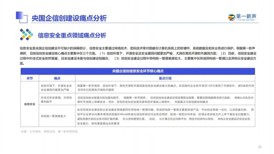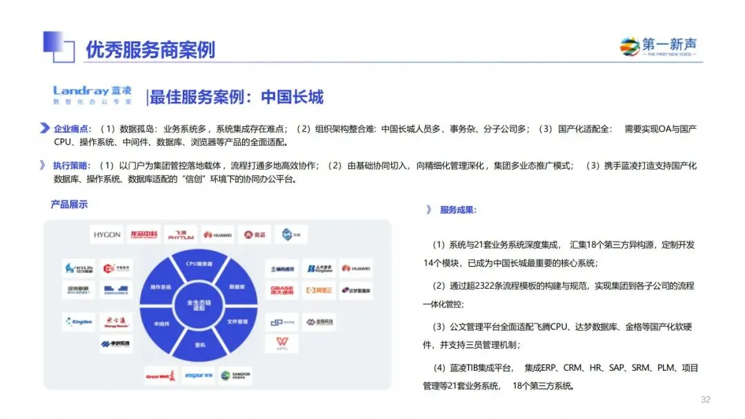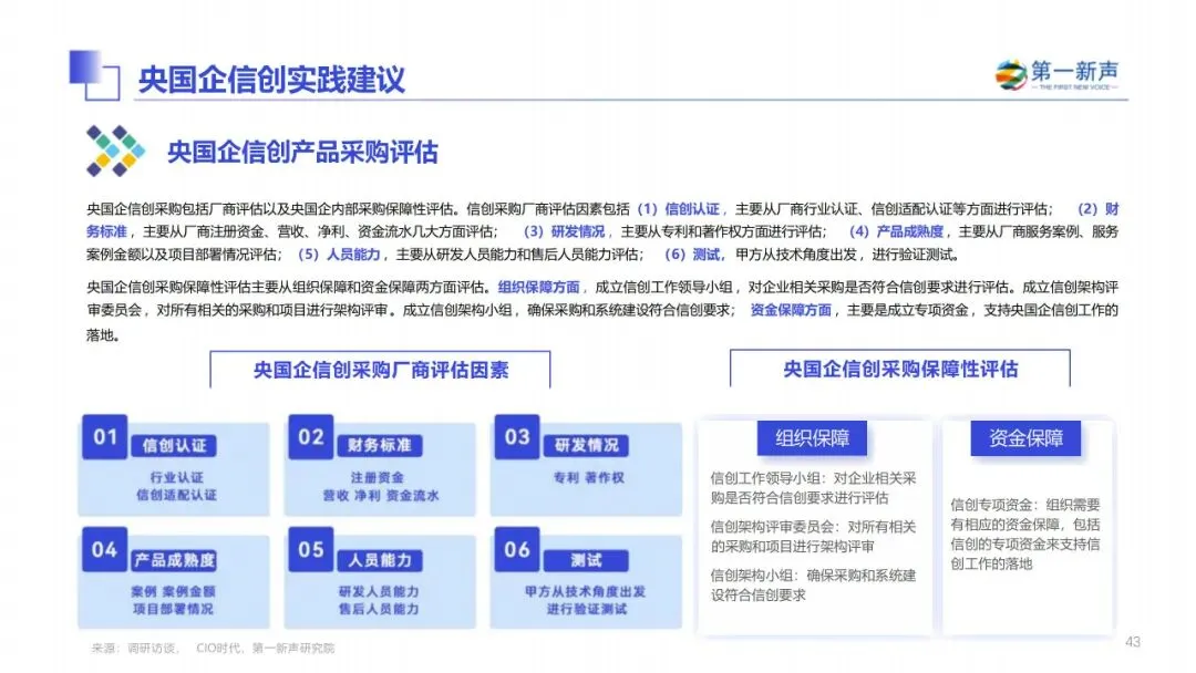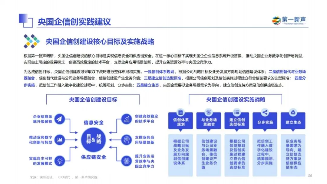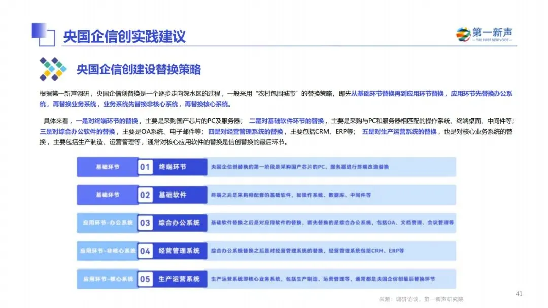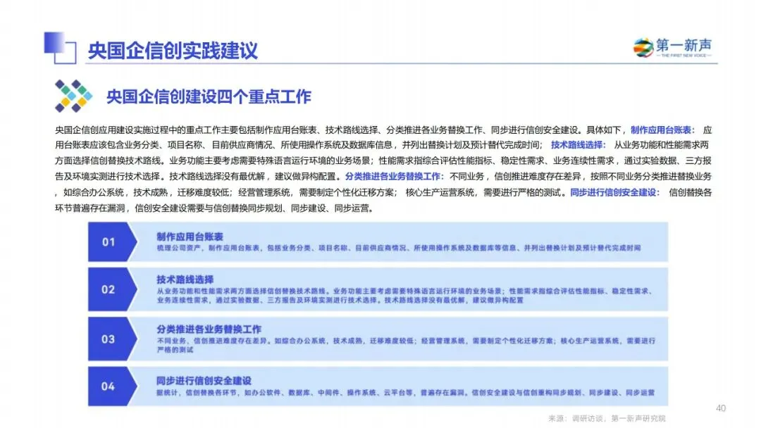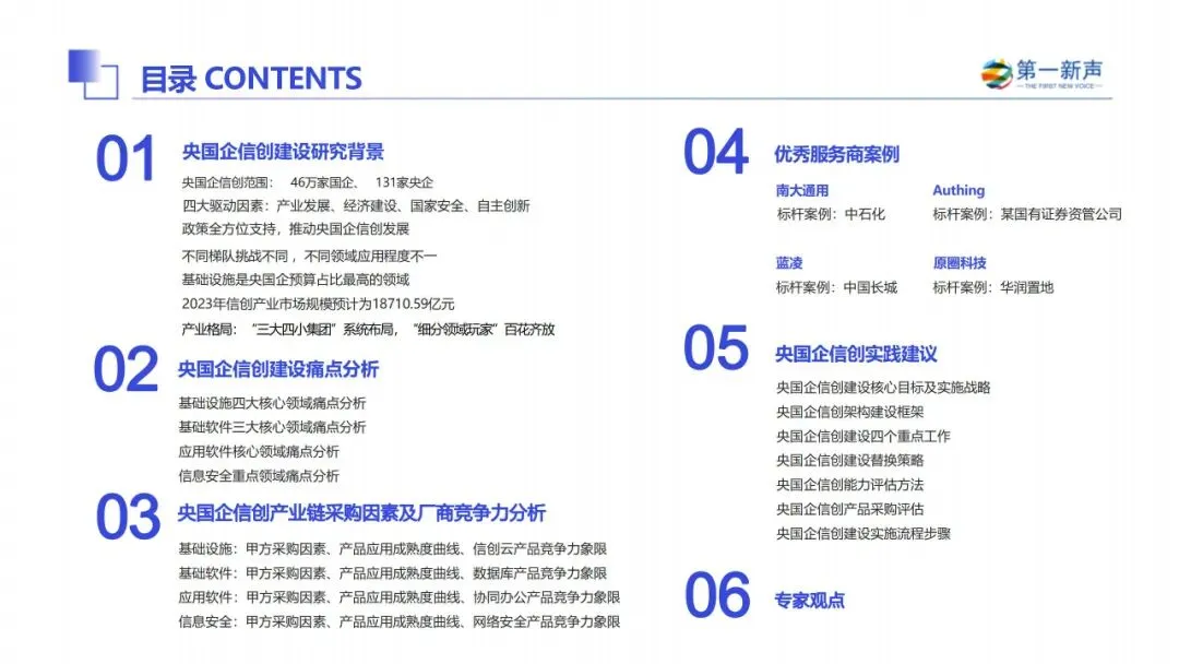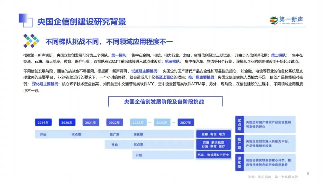在数字经济成为全球竞争新高地的今天,央国企作为国民经济的中流砥柱,其数字化转型不仅关乎企业自身竞争力,更与国家信息安全、产业链自主可控息息相关。近年来,随着信创(信息技术应用创新)政策的深入推进,央国企信创应用已从试点探索迈向规模化落地,形成了一系列可借鉴的实践经验。根据国资委79号文要求,2027年前央国企需完成核心系统100%信创替代,而实际执行中,部分行业(如金融、电信、能源)已提前至2025年完成610。政策推动下,信创市场从党政机关扩展至“2+8+N”行业(金融、电信、电力、交通等),预计2025年市场规模将突破1.2万亿元47。芯片、服务器、存储等硬件国产化替代是信创建设的首要任务。目前,国产CPU(如龙芯、飞腾)已占据约25%的服务器市场份额,信创PC预计2025年出货量超500万台7。混合云部署成为主流方案,某能源央企通过华为云DevCloud实现ERP系统平滑迁移,节省成本1800万元4。操作系统(统信UOS、麒麟OS)、数据库(达梦、人大金仓)、中间件(东方通)逐步成熟,并完成全栈适配6。某央企采用国产数据库替换Oracle,数据迁移效率提升70%,运维成本降低200万元4。OA、ERP、CRM等管理软件国产化替代加速。例如,蓝凌信创OA已在中储粮、中国一汽等企业落地,支持全生态国产化适配3。项目管理工具(如禅道)结合AI实现WBS智能拆解,某制造企业任务拆解效率提升40%4。九思软件推出“智联管理大模型”,深度融合AI与信创OA,实现智能问答、数据分析、流程自动化,显著提升管理效能1。DeepSeek大模型在金融风控、能源预测等场景的应用,进一步推动信创向智能化升级1。数据迁移隐形成本:某央企因未统一数据标准,30%历史数据无法解析,建议预留20%时间进行清洗4。国产生态兼容性:优先选择主流组合(如达梦数据库+东方通中间件+麒麟OS)4。员工适配难题:采用“双系统并行+快捷键映射”策略,某央企员工上手周期从3个月缩短至1个月4。随着信创产业从“政策驱动”转向“市场驱动”,生态协同成为关键。中国电子、华为、中国电科等“三大”集团已构建完整信创生态,而细分领域厂商(如南大通用、东方通)也在数据库、中间件等环节形成竞争力。▲扫下方二维码,加入行业库