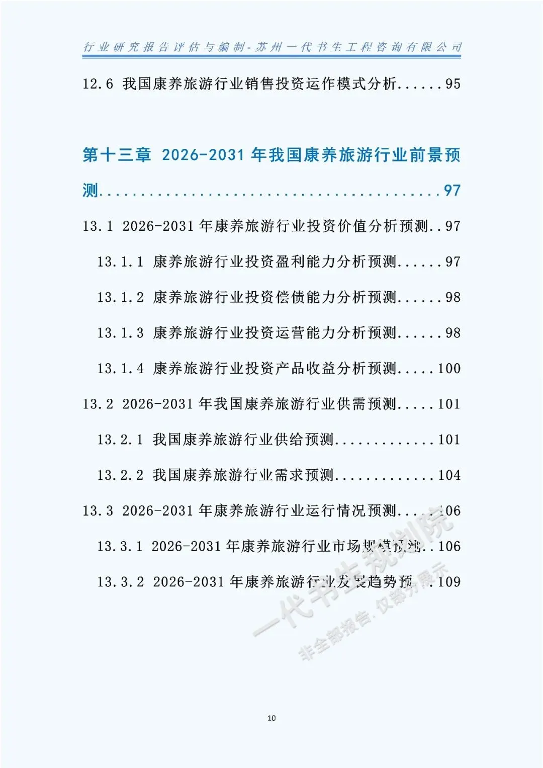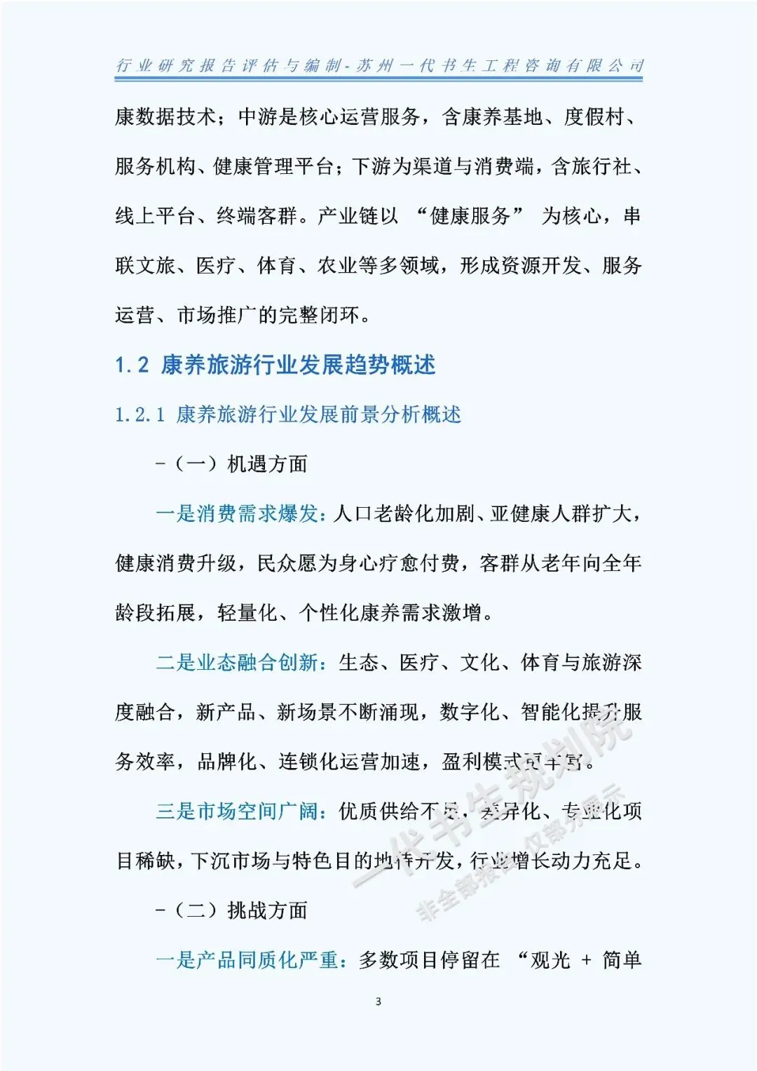 以上《2026年-2031年我国康养旅游行业市场分析调研报告》是由苏州一代书生工程咨询有限公司出具。