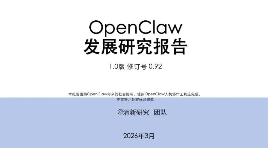 近日,清华大学发布了《OpenClaw发展研究报告1.0》。这份报告描绘了一个正在急速成型的“AI执行时代”。下面我们就用最通俗的方式,为你拆解这份报告的核心精华。