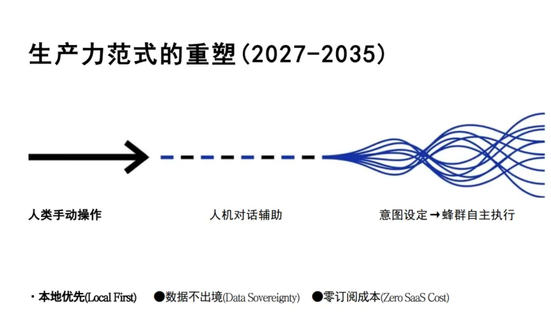 全球新增GDP1.5-2.5%,个人代理产值超过SaaS总收入。基于记忆哈希的“血统证明”成为可继承资产,Agent间绕过支付API直接交易。