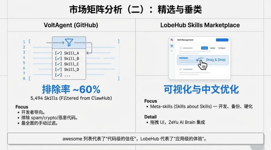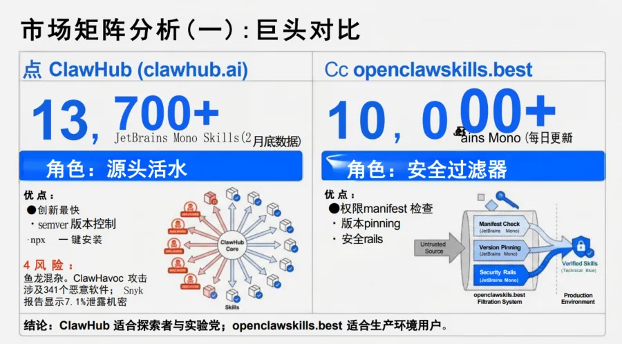 ? 生态正在自救:从野蛮生长到精选市场,从ClawHub到openclawskills.best,安全筛选机制正在成型。排除率高达60%——这就是自由的代价,也是成熟的必经之路。