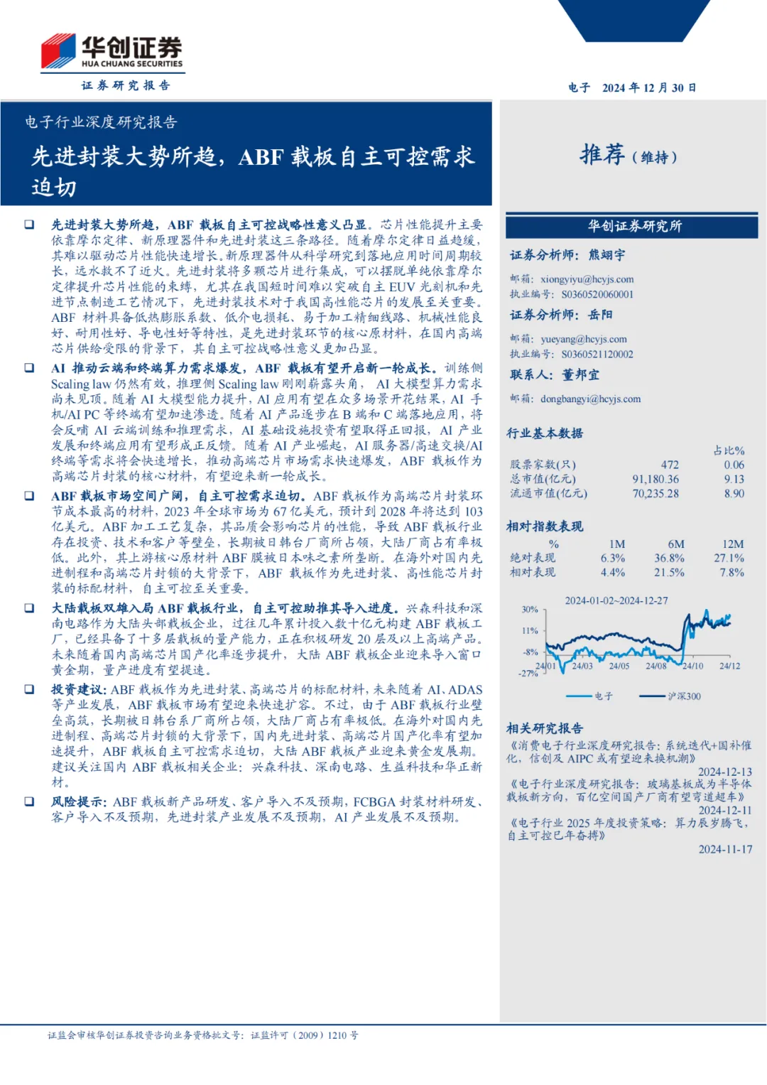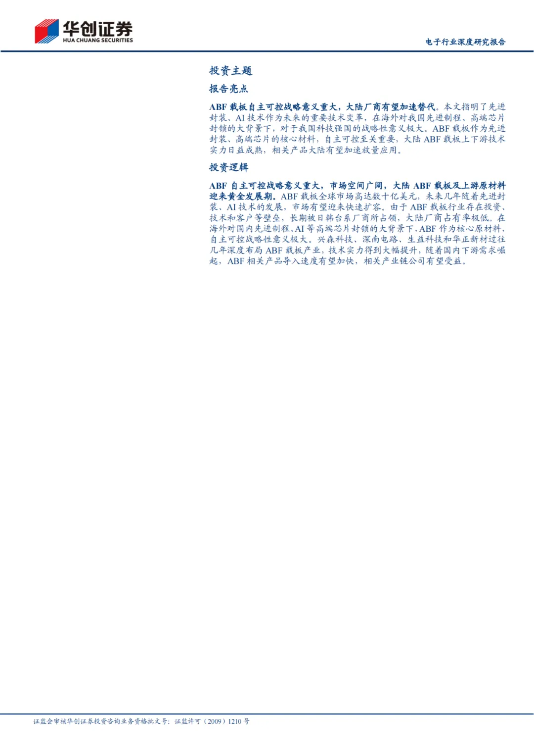 下载报告:电子行业深度研究报告:先进封装大势所趋,ABF载板自主可控需求迫切