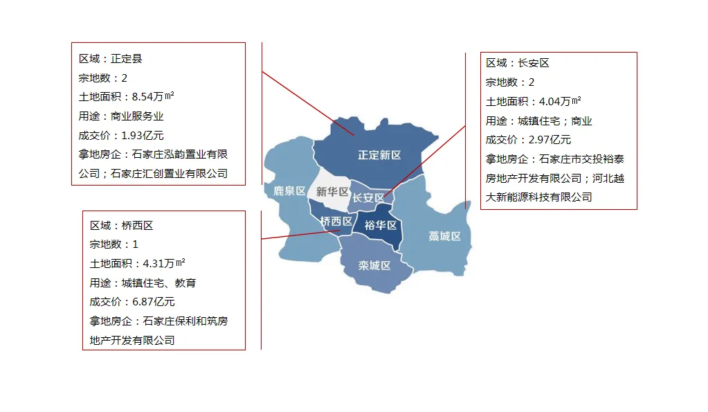2026年2月,石家庄市(含正定新区)共供应土地11宗(含补证地块),含1宗住宅用地、2宗商服用地、1宗供电用地、1宗物流仓储用地、6宗工业用地,总面积约32.38万平米(约合485.73亩),总起始价约为8.55亿元。