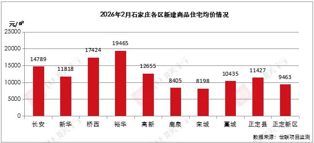 分区域价格方面,裕华区居于首位,为19465元/㎡;其次为桥西区,为17424元/㎡。(注:价格以普通住宅为主)