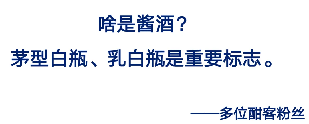 我们在访谈过程中,有多位酣客粉丝反馈茅形瓶、乳白色的瓶子是酱酒的重要标志。