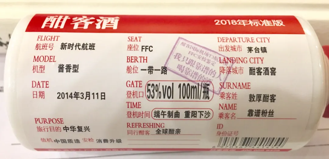 特性1、登机牌瓶标是酣客国民酱酒的视觉化特性,也是酣客重要的战略符号。