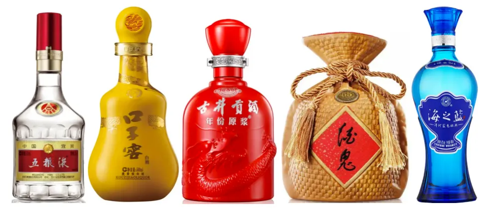 瓷瓶:以皖酒和苏酒、湘酒为代表包装形态,包括古井贡酒、口子窖酒、洋河、酒鬼酒等。