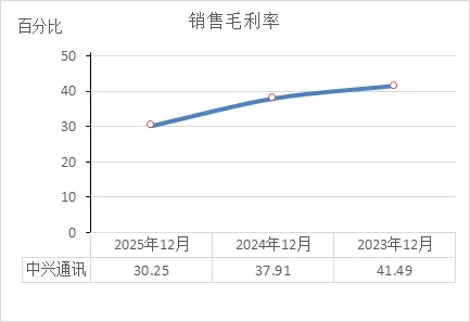 毛利率崩了:整体毛利率从37.9%掉到30.2%,卖东西越来越不赚钱。