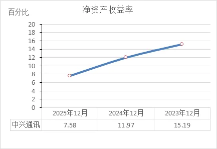 关键在于“杠杆效率”: 权益乘数是把双刃剑——市场好时放大收益,市场差时放大亏损。2023年杠杆2.94倍时,ROE是15.19%;2025年杠杆2.88倍(几乎没变),ROE却腰斩到7.58%。说明杠杆还在,但赚钱能力没了。