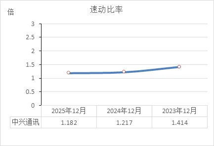 能快速变现的资产在减少: 速动比率剔除了存货(因为存货卖得慢、可能跌价),只看现金、应收款、交易性金融资产这些能马上变现的东西。从1.414倍降到1.182倍,说明这些“快钱”的覆盖能力在缩水。