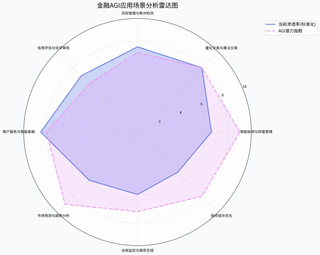 智能投顾、量化交易、客户服务等场景渗透率高,市场预测和投资组合优化AGI潜力最大