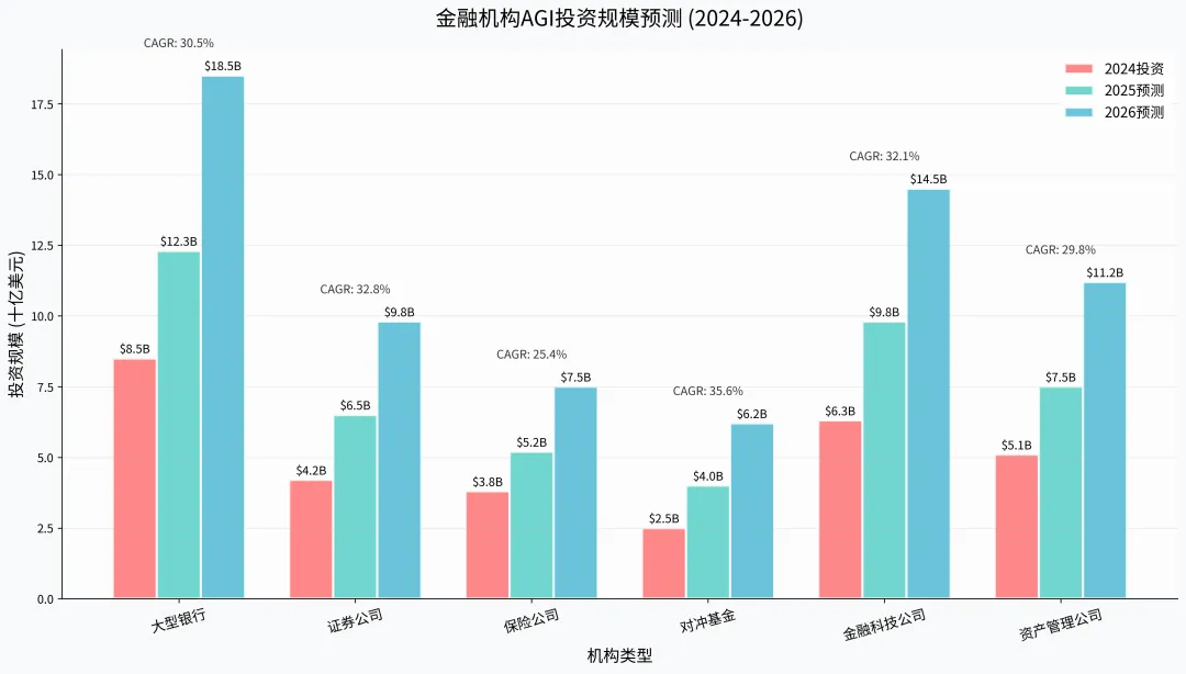 金融行业AGI投资2024-2026年复合增长率达122.7%,显示强烈技术投入意愿 - 应用场景成熟度: