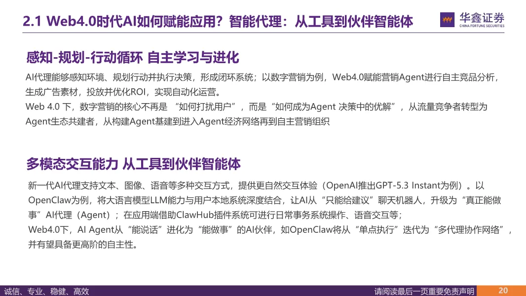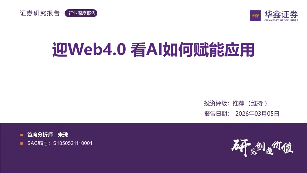 这份来自华鑫证券的 Web4.0 行业深度报告,完整拆解了智能互联网时代,AI 如何为各行业应用深度赋能,也清晰梳理了 Web4.0 带来的产业变革与全新机会?。