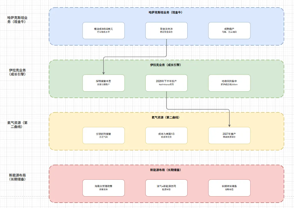 哈萨克斯坦业务(现金牛): 马腾、克山油田成熟稳产,桶油成本6‑10美元,现金流充沛。美伊冲突对哈国直接影响小,但通过油价传导正面。
