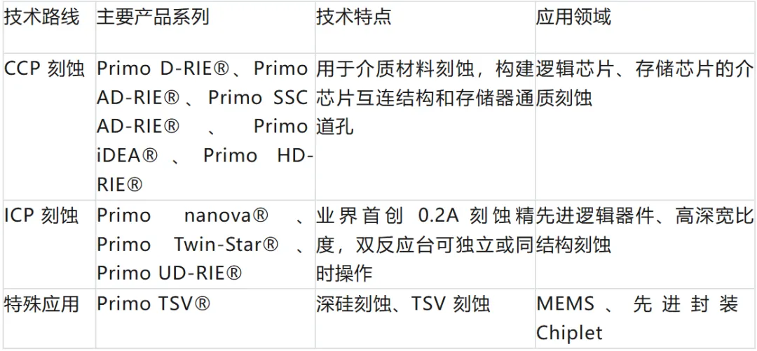 技术路线全面覆盖。中微公司的刻蚀设备产品线覆盖了电容耦合等离子体(CCP)和电感耦合等离子体(ICP)两大主流技术路线,可覆盖 90% 以上的刻蚀应用。