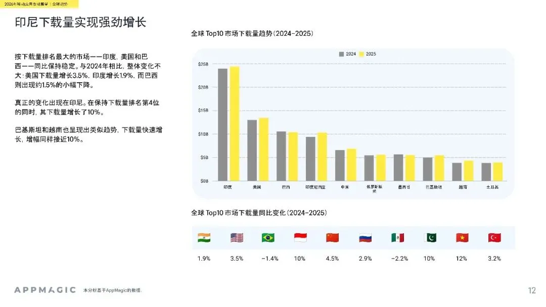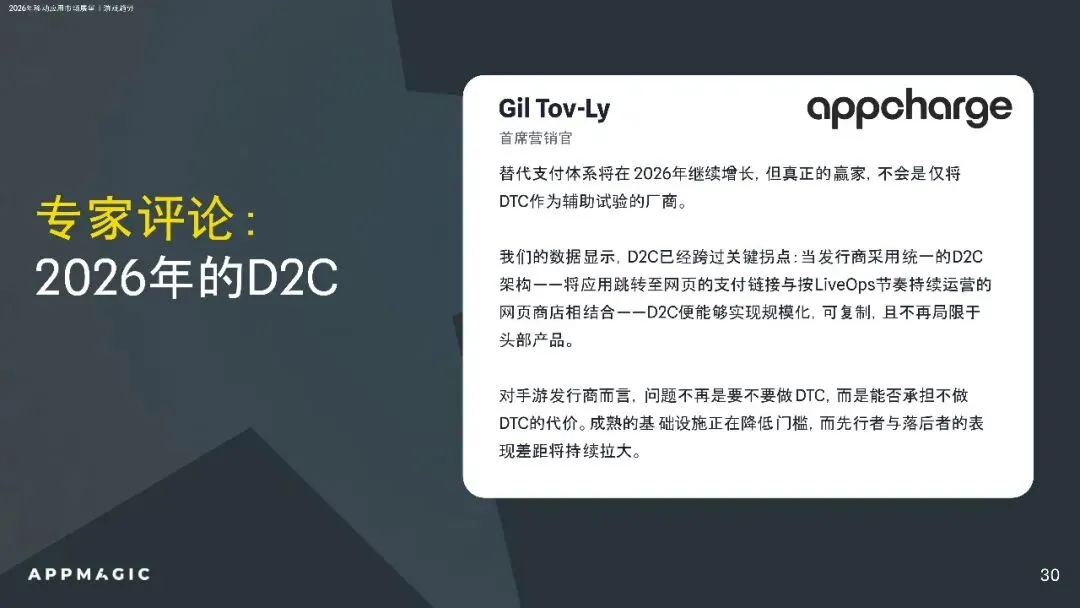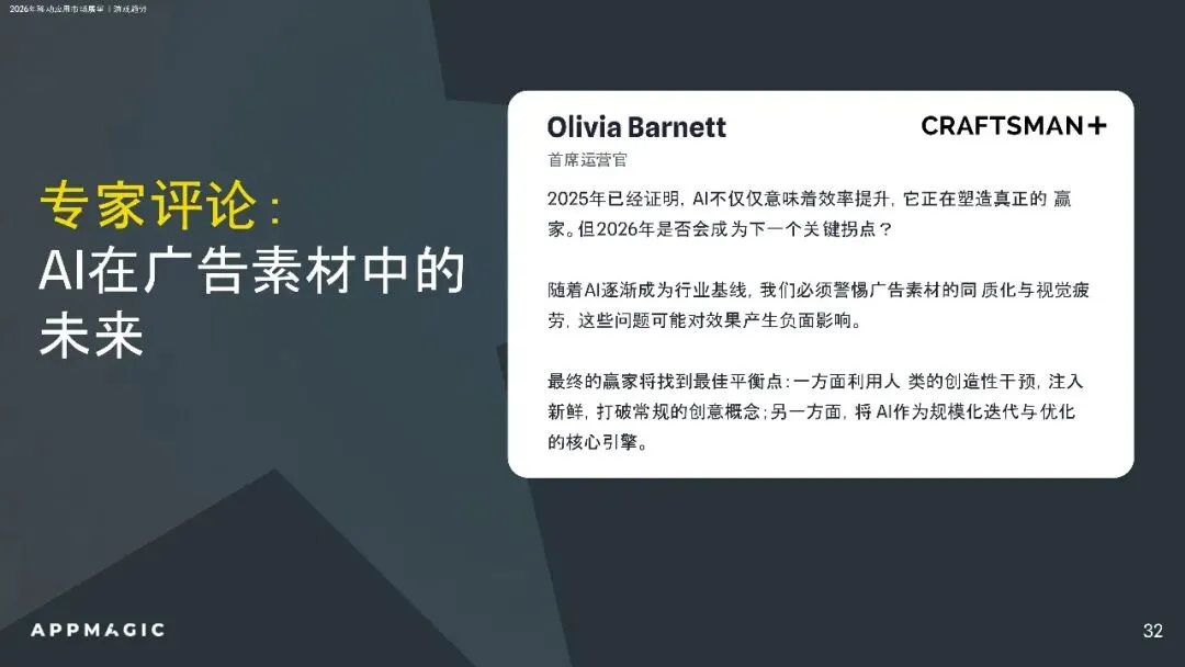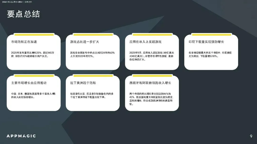 应用市场方面,工具与娱乐应用收入增长显著,生成AI成最大结构性变化。用户留存整体平稳,市场增长从用户规模扩张转向变现能力提升。未来,AI驱动的广告素材和D2C收入模式将成为行业标配,市场竞争将更加激烈,创新与差异化成为关键。