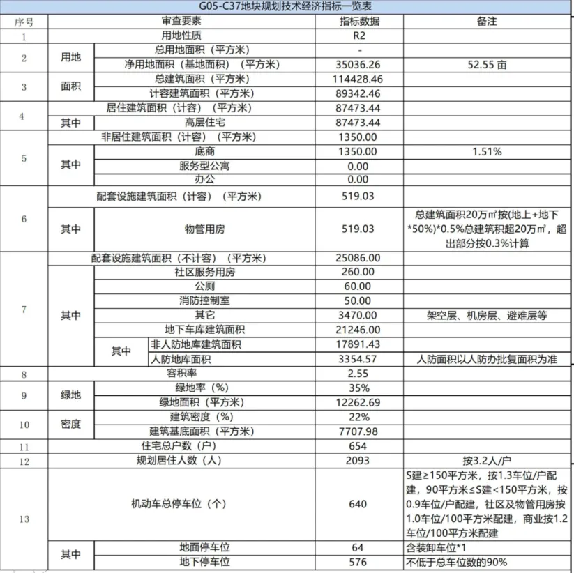 绿地率35%,建筑密度22%。指标适中,符合现有居住小区的舒适属性。